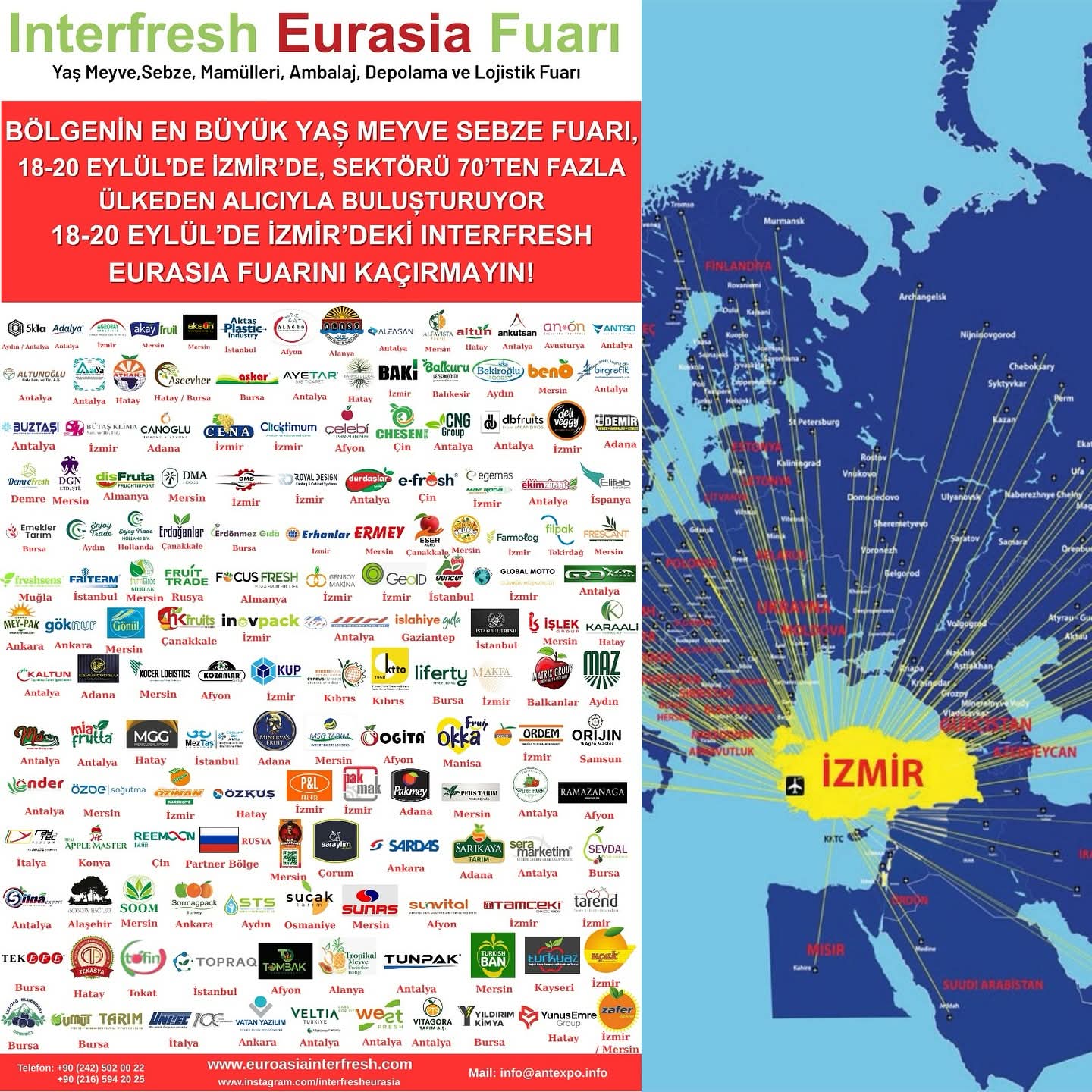 18-20 Eylül tarihlerinde İzmir, sadece Türkiye’nin değil dünyanın farklı noktalarından gelen profesyonellerin buluşma noktası olacak. Interfresh Eurasia; üretici, ihracatçı, lojistikçi, perakendeci ve alıcıları aynı çatı altında bir araya getirerek, sektörün geleceğine yön verecek stratejik iş birliklerine sahne olacak.