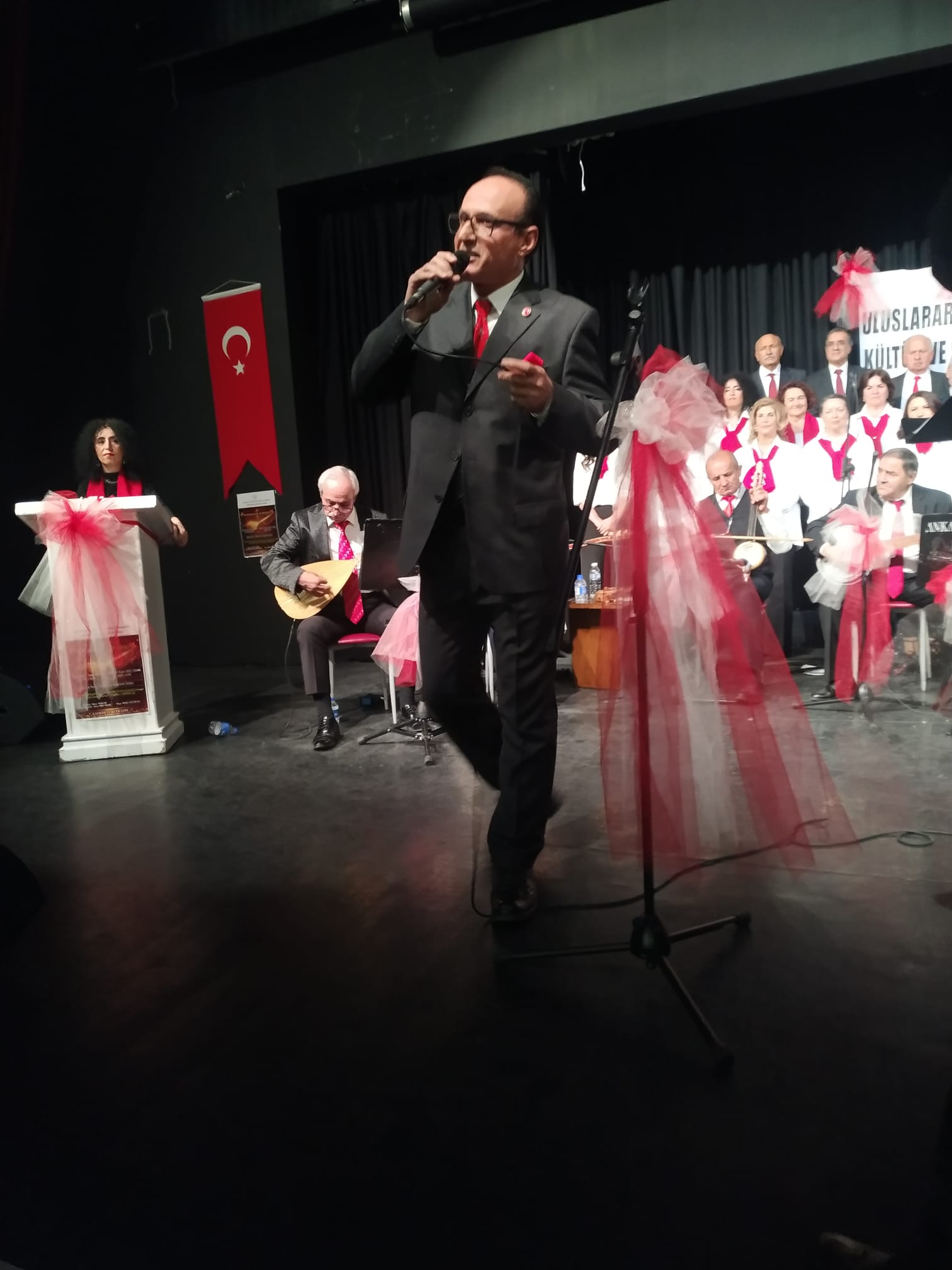 Program, İstiklal Marşımızın gür sesiyle ve saygı duruşunun vakur sessizliğiyle açıldı. Ardından türkülerin kapısı aralandı; Karadeniz’in hırçın dalgaları, Ege’nin meltemi, İç Anadolu’nun dinginliği, Urfa’nın yanık sesi aynı sahnede buluştu.