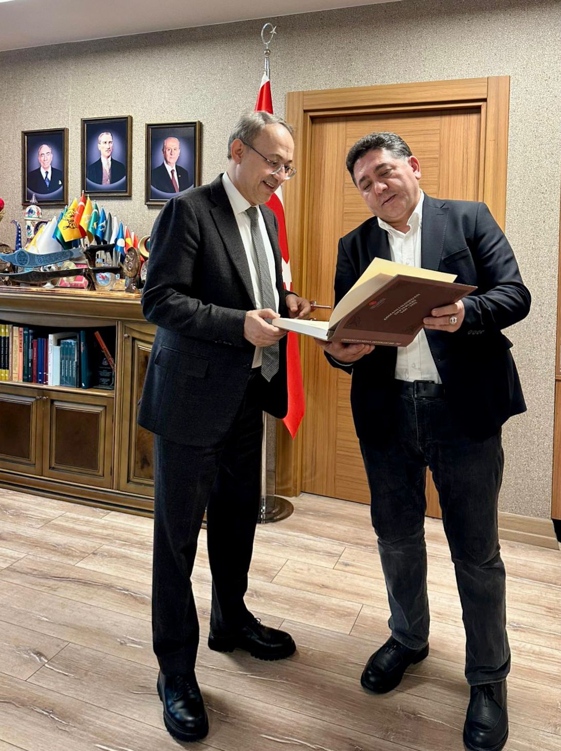 Takdim töreninde konuşan Erdoğdu, Prof. Dr. Topsakal’ın yalnızca akademik çalışmalarıyla değil; aynı zamanda Türk Dünyası’nın birlik, dayanışma ve ortak gelecek idealine sunduğu katkılarla da öncü bir rol üstlendiğini ifade etti.