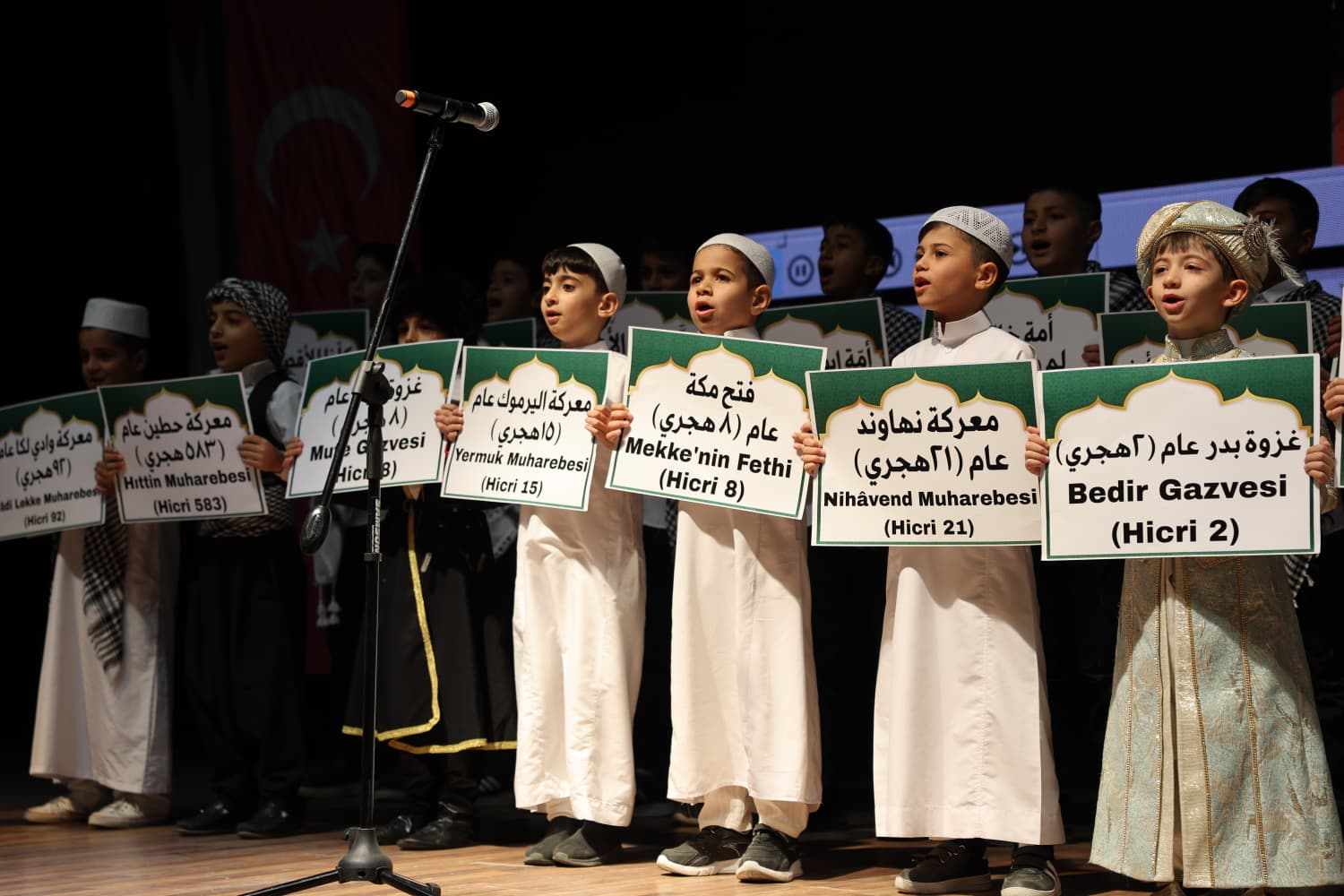 Okunan çeşitli şiirlerden sonra minik çocuklar ilahiler eşliğinde gösteriler yapıldı.